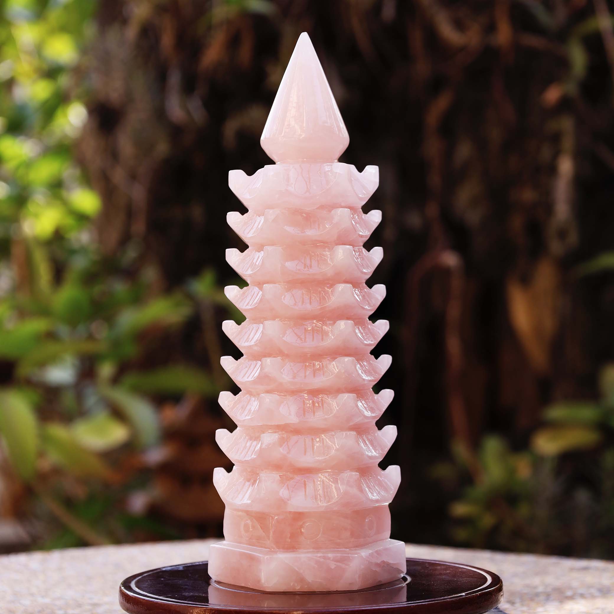 Tên sản phẩm: Tháp văn xương thạch anh hồng 9 tầng 24x7.6cm -1.5kg-DPVN201