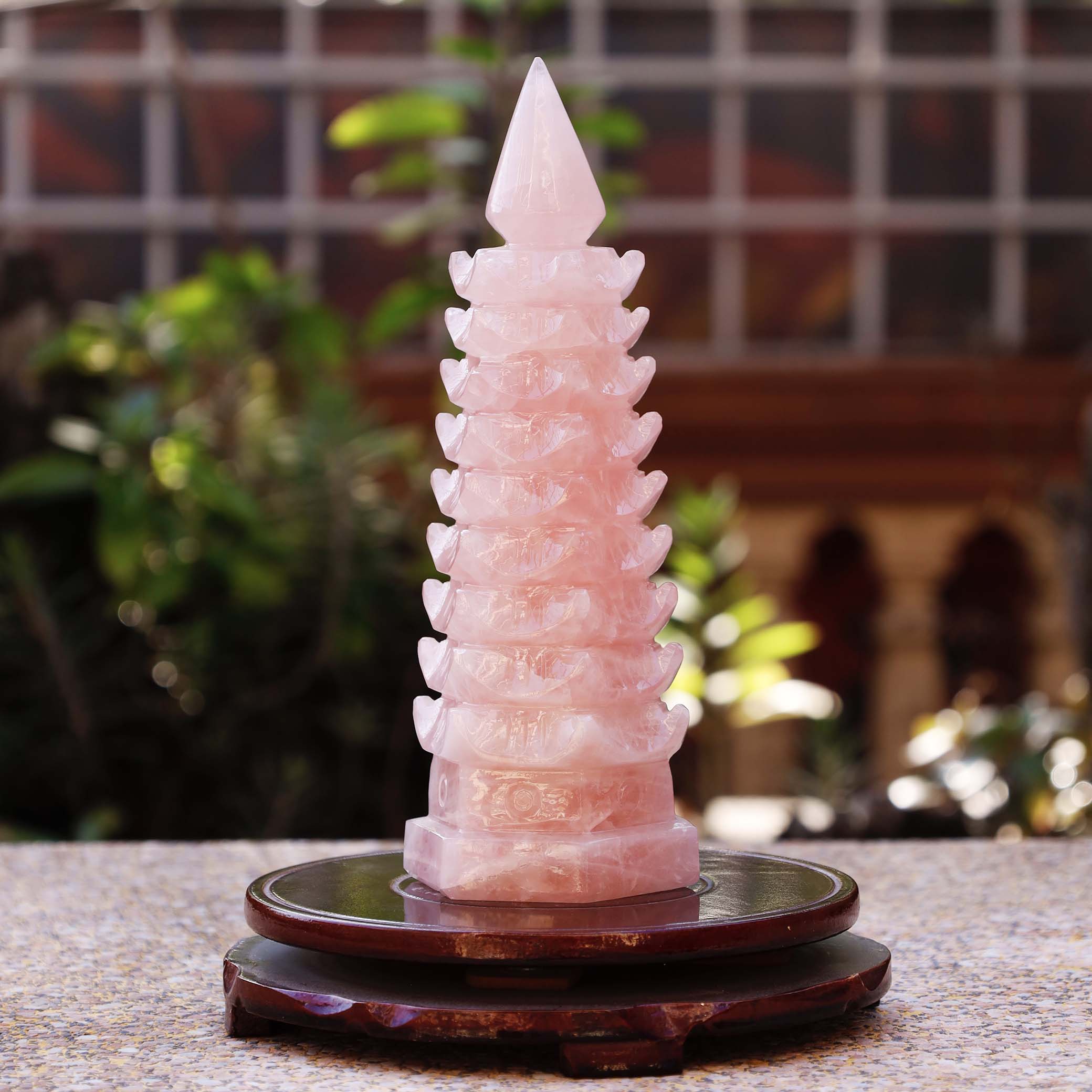 Tên sản phẩm: Tháp văn xương thạch anh hồng 9 tầng 22.5x7.3cm-1.2kg-SP001097-3