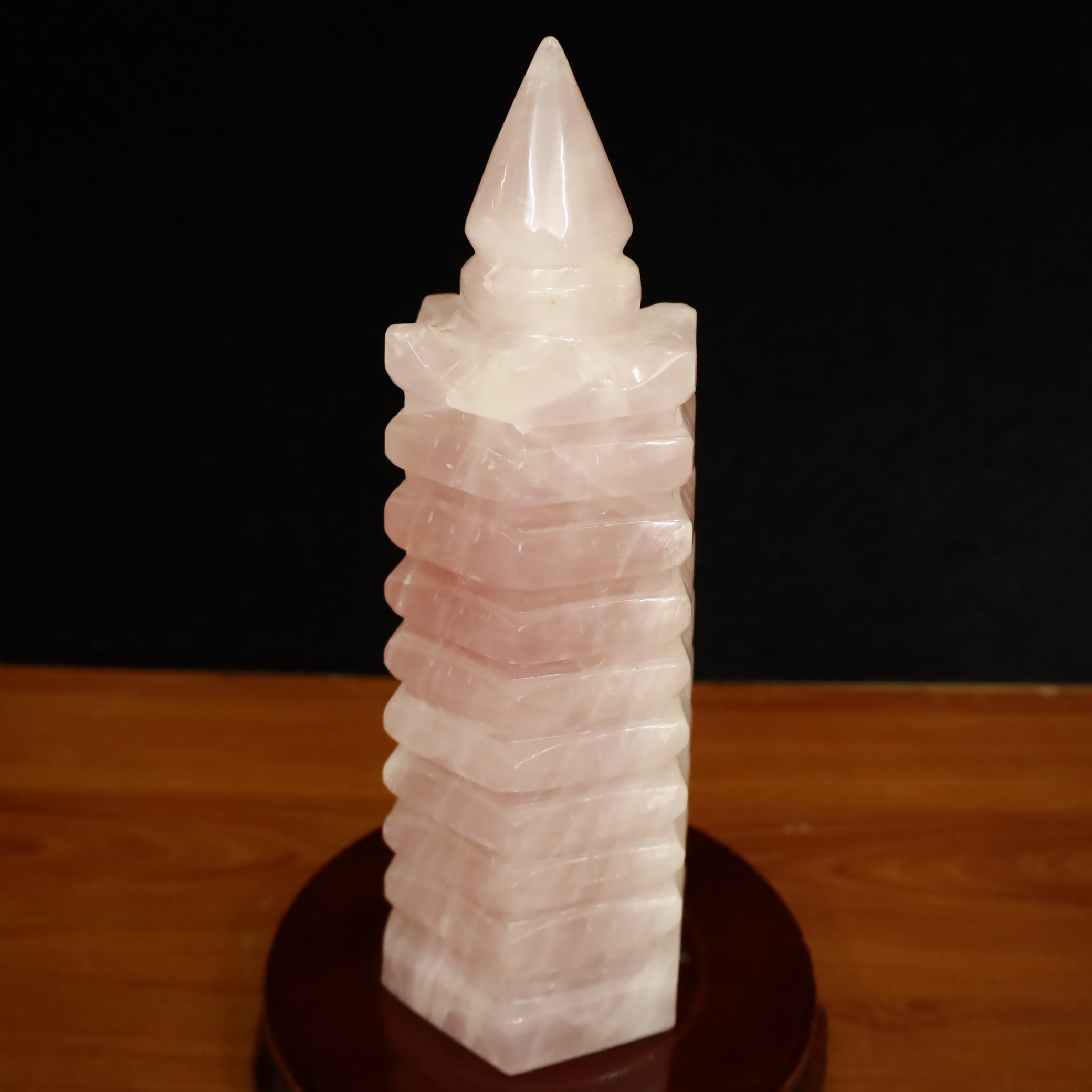 Tháp văn xương thạch anh hồng 9 tầng - 28.5x10.5cm-3.65kg-MTA263