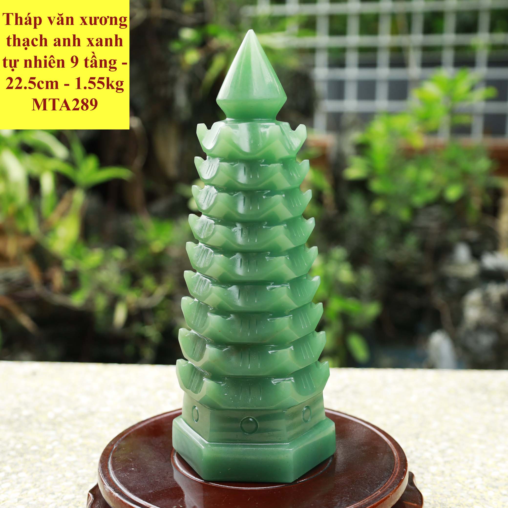 Tháp văn xương thạch anh xanh tự nhiên 9 tầng-22.5cm-1.55kg-MTA289