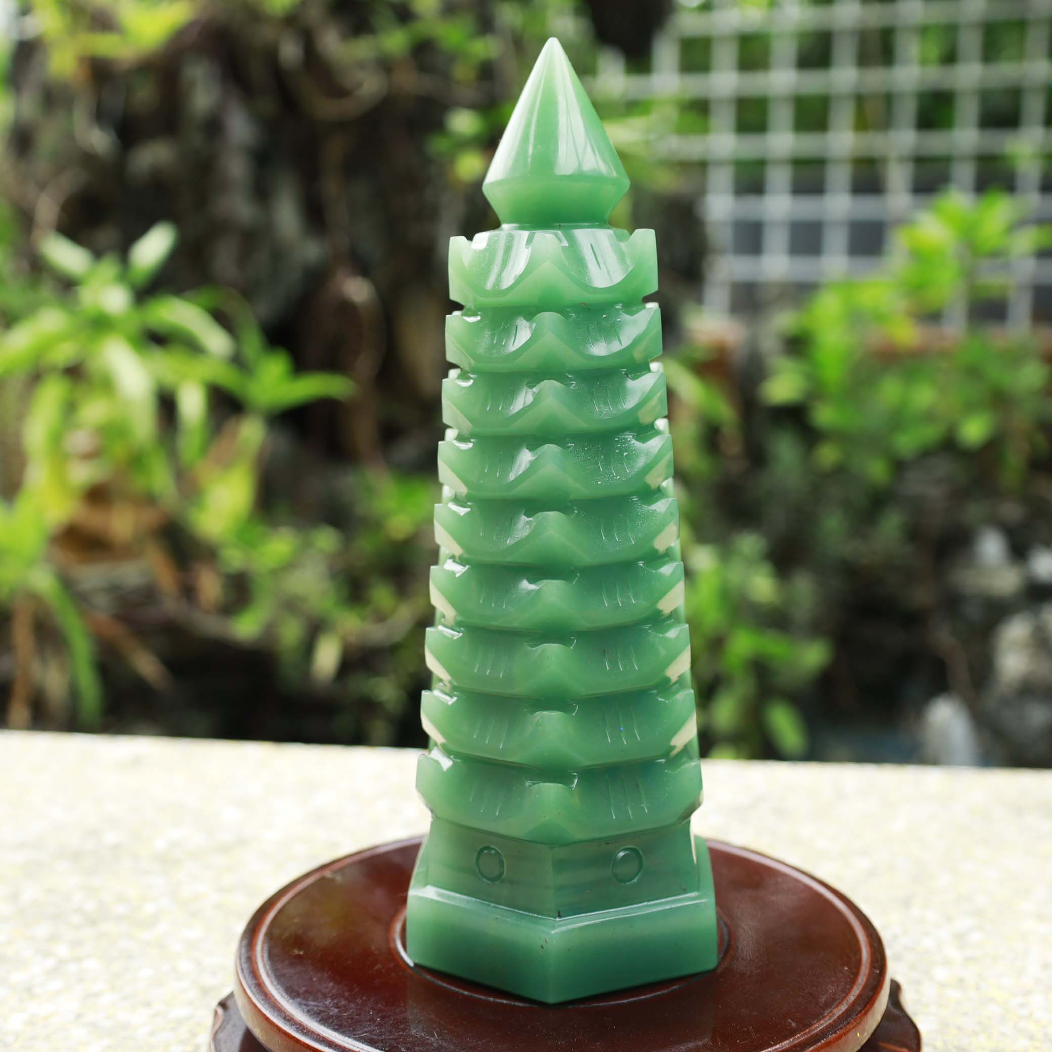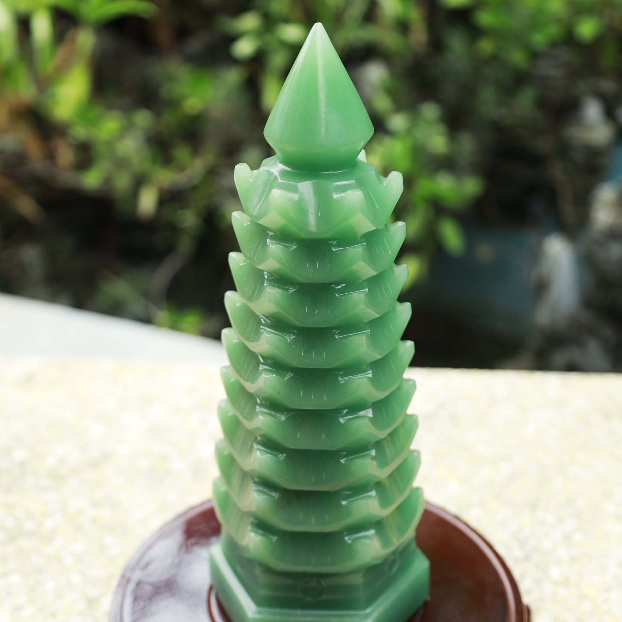 Tháp văn xương thạch anh xanh tự nhiên 9 tầng - 22.5cm - 1.55kg - MTA289