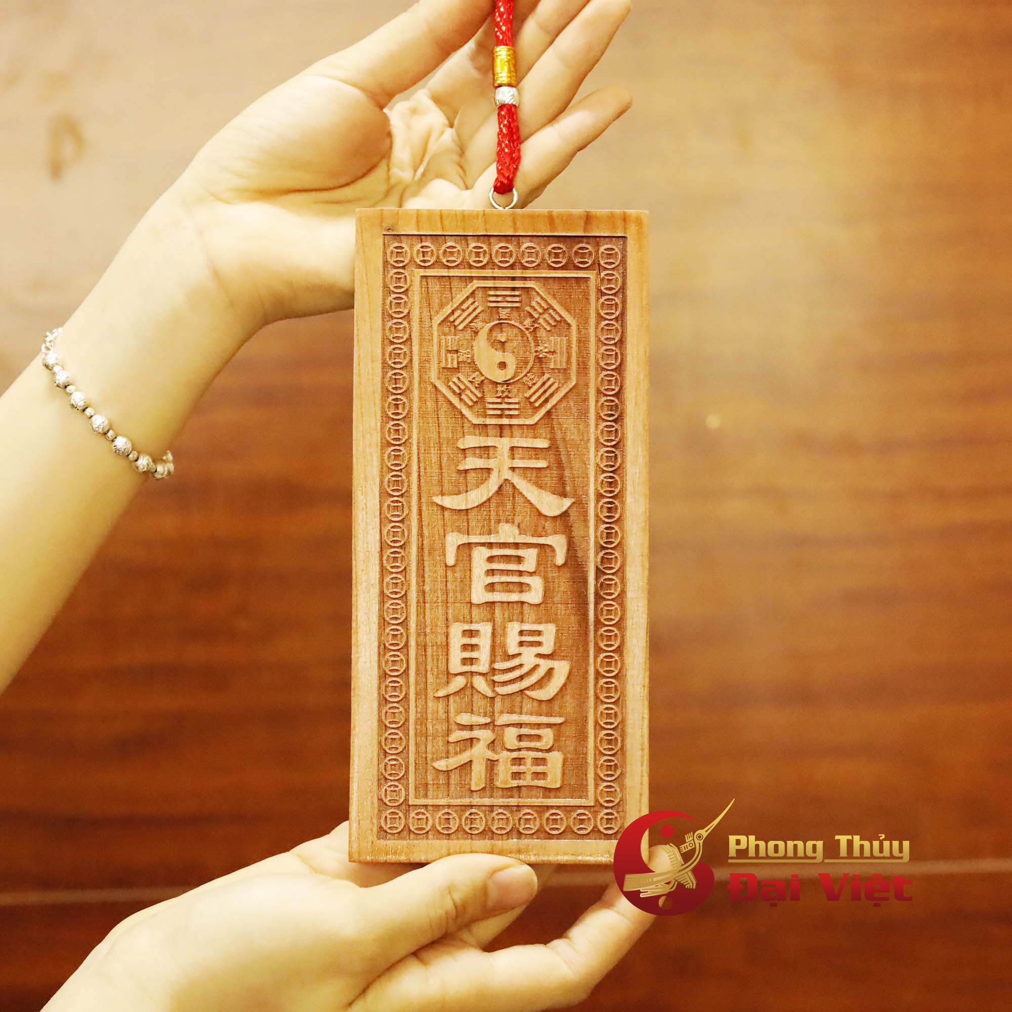 Thẻ Bài Thiên Quan Tứ Phước Gỗ Đào Loại Đứng 18x8x1cm