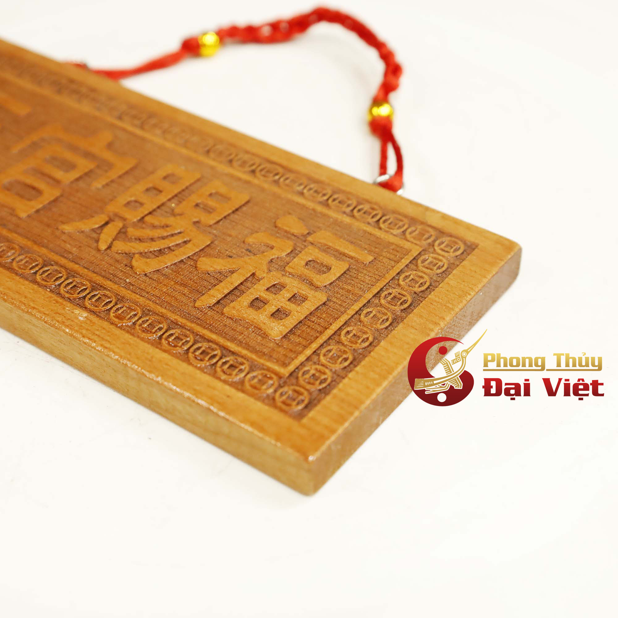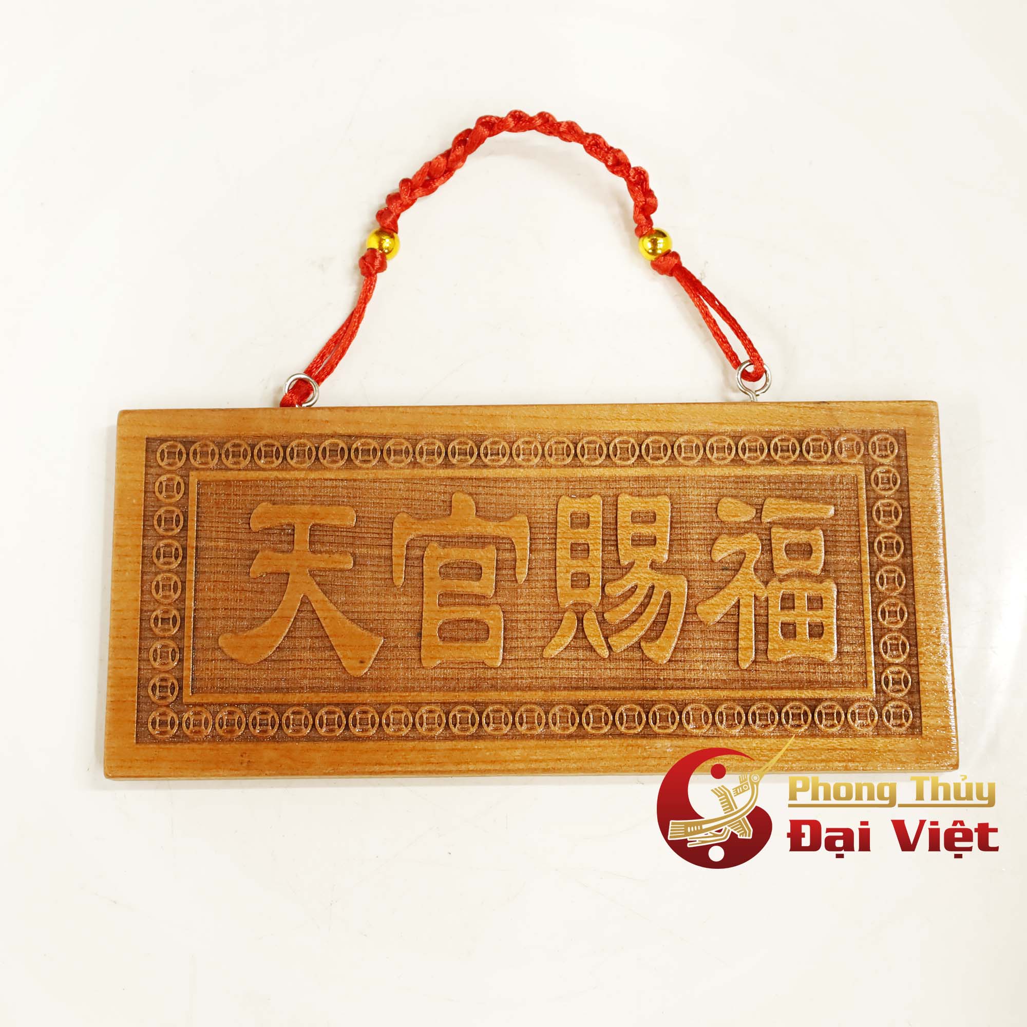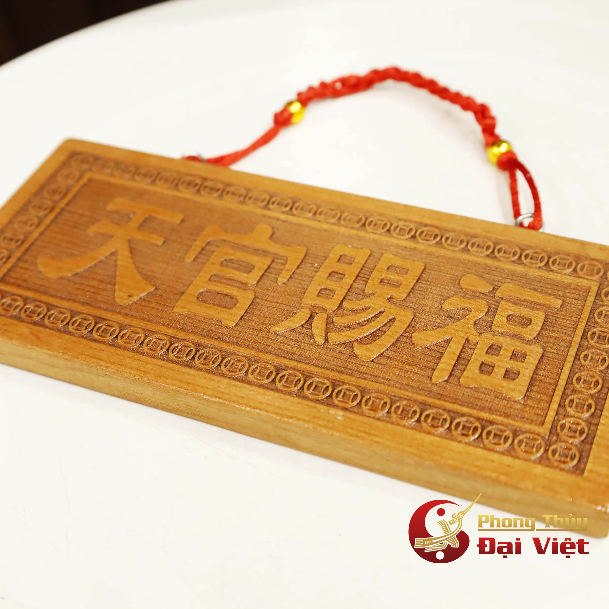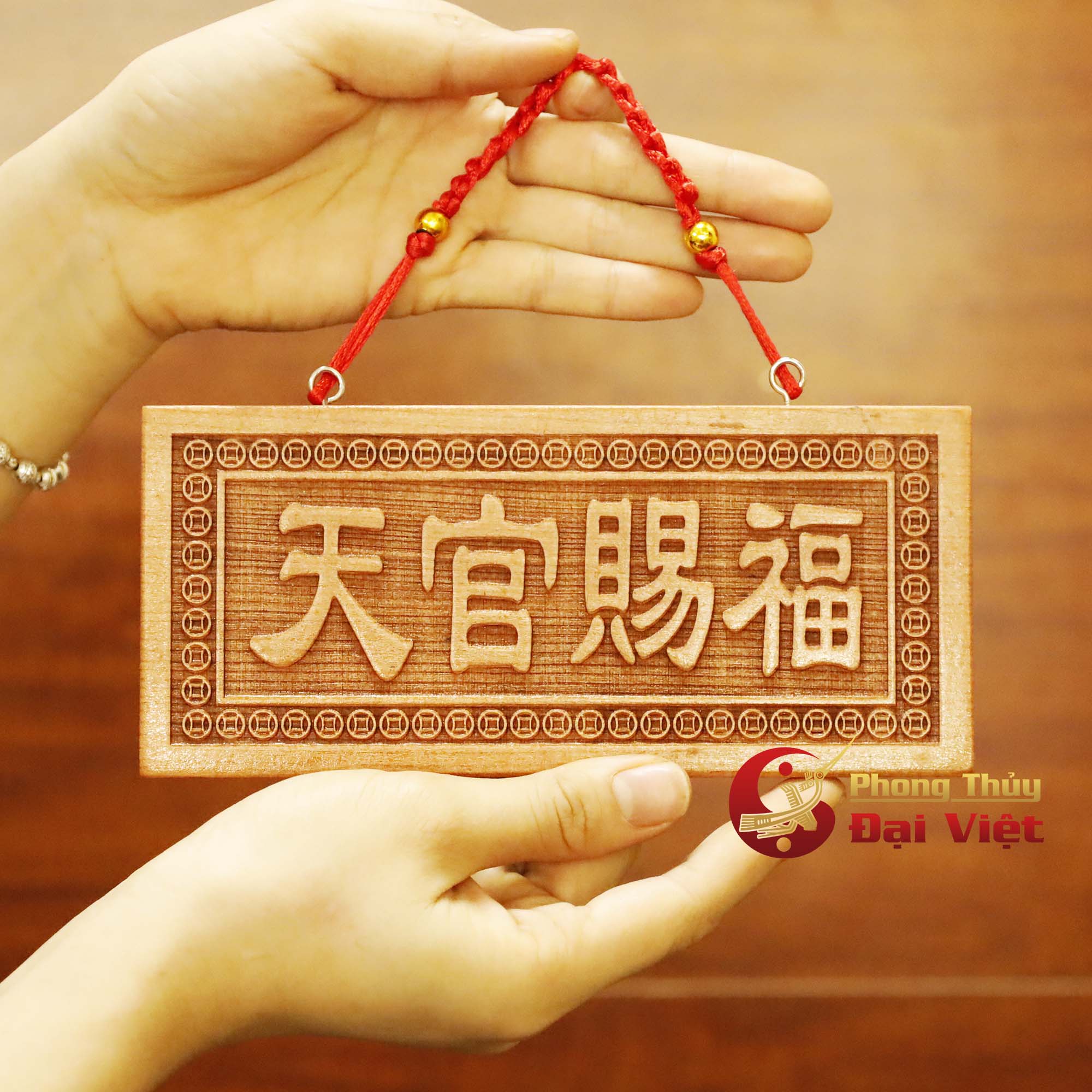 Thẻ Bài Thiên Quan Tứ Phước Gỗ Đào Loại Ngang 8x18x1cm