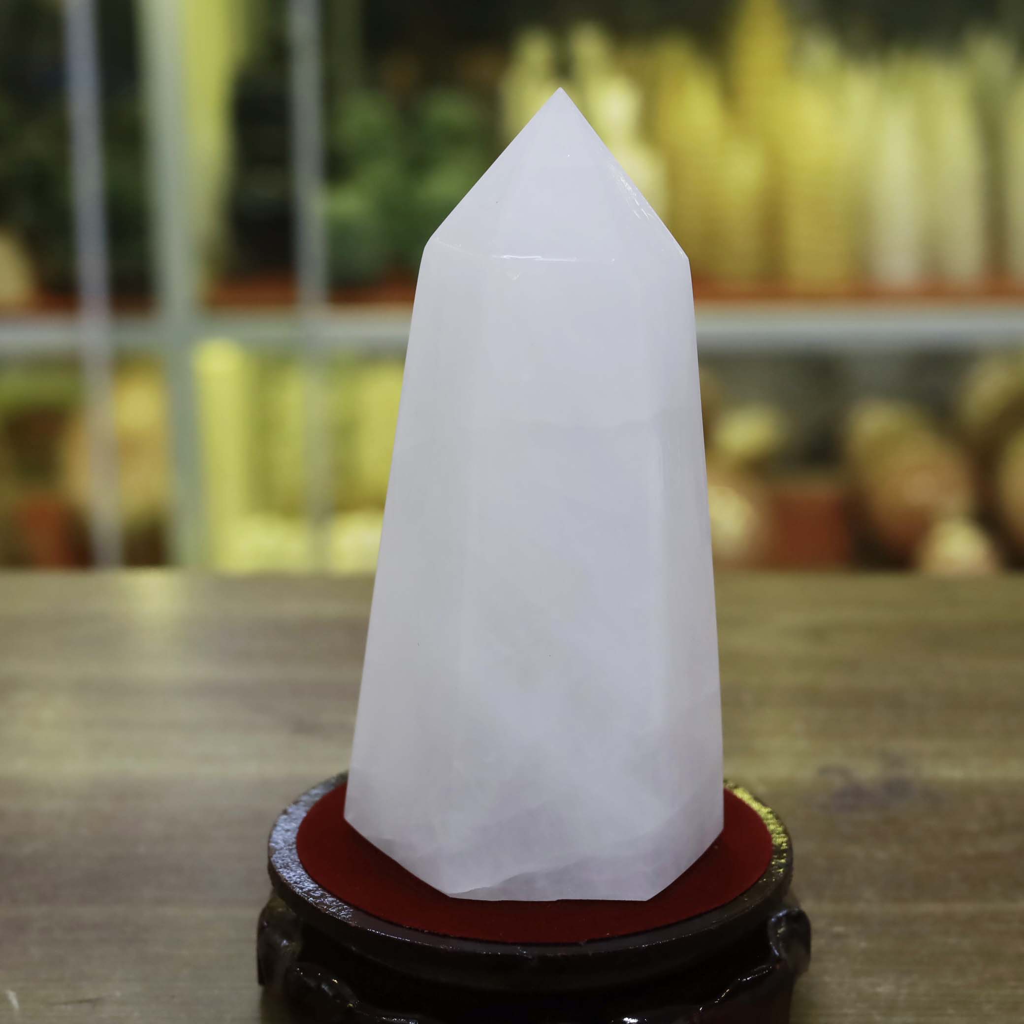 Trụ đá thạch anh trắng đục 15x6cm-0.9kg-MTA376