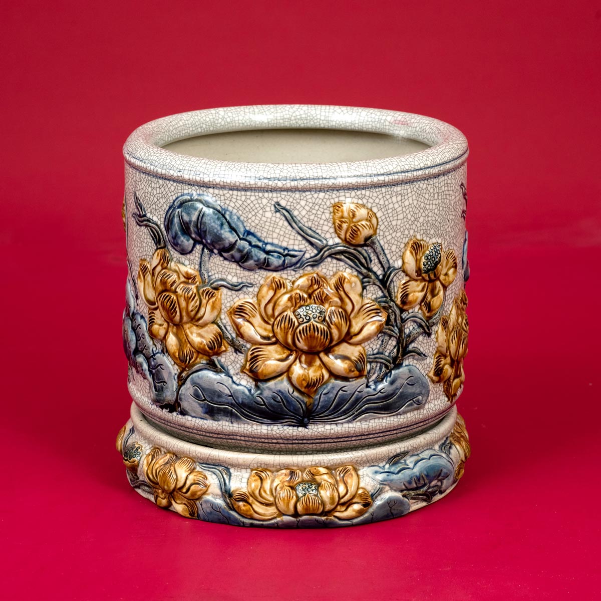 Bát hương Bát Tràng từ lâu đã được biết đến là vật phẩm thờ cúng có ý nghĩa tâm linh vô cùng quan trọng trên ban thờ của mỗi gia đình, dòng họ. Chính vì vậy, ngoài chất liệu, kích cỡ, nhiều gia chủ hiện nay còn đặc biệt quan tâm đến các họa tiết hoa văn in trên sản phẩm bởi nó chính là một phần thiết yếu giúp cho việc thờ cúng diễn ra suôn sẻ. Một trong số những họa tiết đã làm nên thương hiệu của bát hương Bát Tràng chính là hoa sen.