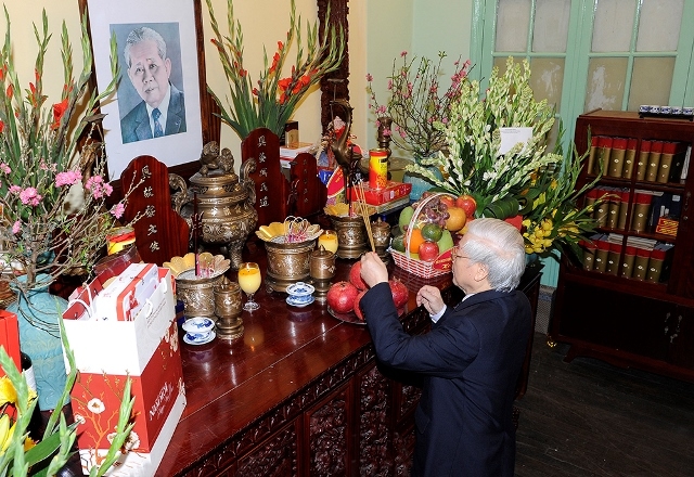 Thông qua nén hương thơm dâng lên ban thờ được trang hoàng bởi bộ đồ thờ bằng đồng, những bậc tiền nhân, tổ tiên, ông bà như đang chứng kiến những ước mong, nguyện cầu của con cháu được phù hộ, độ trì cho sức khỏe, bình an và may mắn tới bách gia, trăm họ.