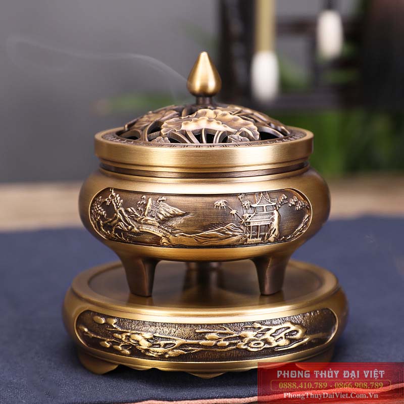 Thân lư có hình bầu với 3 chân chắc chắn được các nghệ nhân gia công rất mịn màng, trau truốt, màu sắc nhã nhặn làm không gian thờ cúng thêm linh thiêng, sang trọng. Thân và nắp lư chạm khắc các hình ảnh hương đồng cỏ nội, hoa sen, chim cò,…gắn liền với nèn văn hoá Việt Nam tạo cảm giác gần gũi, thân thuộc.